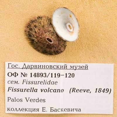 Морской брюхоногий моллюск. Fissurella volcano (Reeve, 1849). Классификация: Моллюски Mollusca, Брюхоногие Gastropoda, Archaeogastropoda, Fissurellidae
