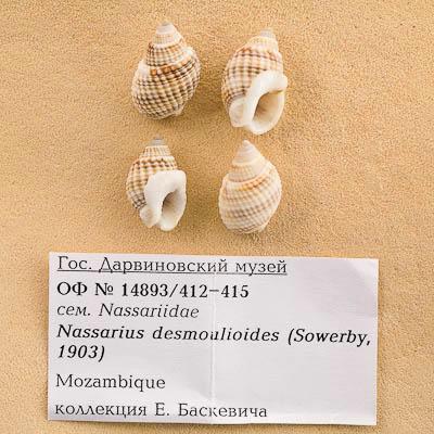 Морской брюхоногий моллюск. Nassarius desmoulioides (Sowerby, 1903). Классификация: Моллюски Mollusca, Брюхоногие Gastropoda, Neogastropoda, Nassariidae