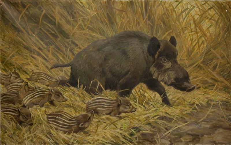 Кабан с кабанятами. Картина
