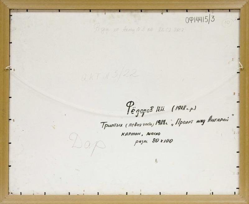 Картина горизонтального формата является левой частью триптиха, изображающего летний пейзаж: панораму сибирской реки с маленькой деревушкой на ее берегу, над которой в небе светится след пролетающего Тунгусского метеорита. Основная колористическая гамма полотна холодная. На первом плане справа на высоком речном берегу стоят шесть деревянных домиков-избушек. Вниз к воде ведет крутая тропа. На песке у самой воды лежат три узкие деревянные лодки. Береговая линия сильно изрезана, широкие отмели видны и в самом центре речного русла. Противоположный берег покрыт густым темно-зеленым лесом, а еще дальше над рекой поднимаются синие невысокие горы. Линия горизонта расположена низко, большую часть картины занимает изображение голубого неба с несколькими легкими прозрачными белыми облаками на нем. В центре картины над горами из-за горизонта поднимается и круто уходит вправо широкая светло-желтая полоса – след метеорита. Она отражается в реке, отблески ее играют желтыми бликами на крышах домов. Краски наложены тонкими прозрачными слоями на изображении неба, а на первом плане – густыми пастозными мазками.