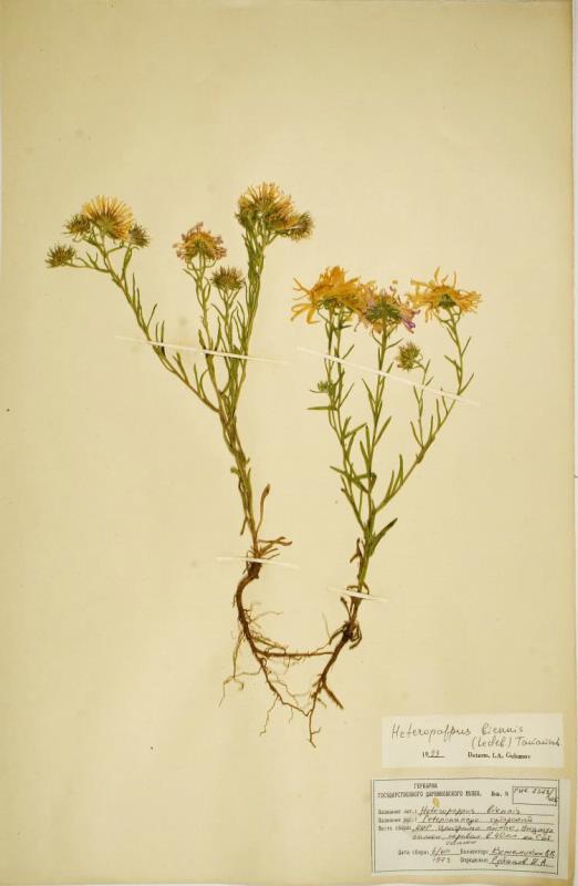 Гербарий. Гетеропаппус татарский. Heteropappus biennis (Ledeb.) Tamamsch. Классификация: Растения Plantae seu Vegetabilia, Растения, Compositae, Гетеропаппус татарский Heteropappus biennis (Ledeb.) Tamamsch.
