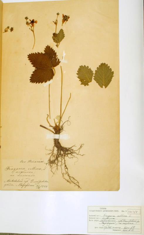 Гербарий. Клубника. Fragaria collina L. Классификация: Растения Plantae seu Vegetabilia, Растения, Rosaceae, Клубника Fragaria collina L.