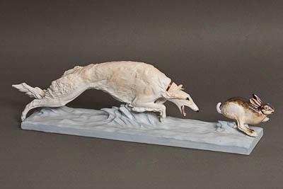 Малая пластика. Борзая, догоняющая зайца