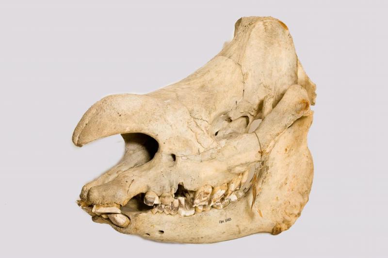 Костный материал. Череп индийского носорога. Rhinoceros unicornis. Классификация: Хордовые Chordata, Позвоночные Vertebrata, Млекопитающие Mammalia, Непарнокопытные Perissodactyla, Носороговые Rhinocerotidae, Индийский носорог Rhinoceros unicornis