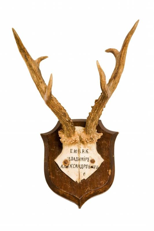 Костный материал. Рога косули на медальоне. Capreolus capreolus. Классификация: Хордовые Chordata, Позвоночные Vertebrata, Млекопитающие Mammalia, Парнокопытные Artiodactyla, Оленевые Cervidae, Capreolinae, Косуля Capreolus capreolus L.,1758