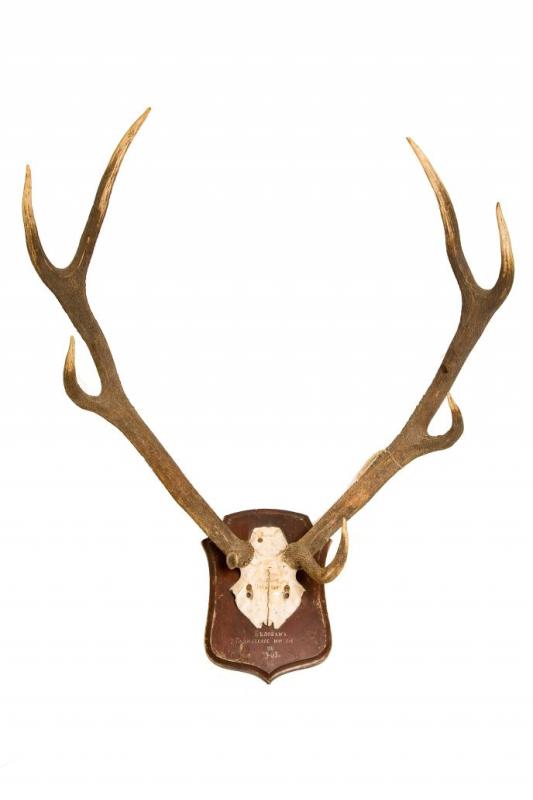 Костный материал. Рога благородного оленя на медальоне. Cervus elaphus. Классификация: Хордовые Chordata, Позвоночные Vertebrata, Млекопитающие Mammalia, Парнокопытные Artiodactyla, Оленевые Cervidae, Cervinae, Благородный олень Cervus elaphus L.,1758