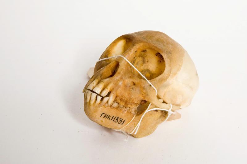 Костный материал. Череп гриветы (зелёной мартышки). Cercopithecus aethiops. Классификация: Хордовые Chordata, Позвоночные Vertebrata, Млекопитающие Mammalia, Приматы Primates, Мартышковые Cercopithecidae, Cercopithecinae, Гривет Chlorocebus aethiops aethiops (Linnaeus, 1758)