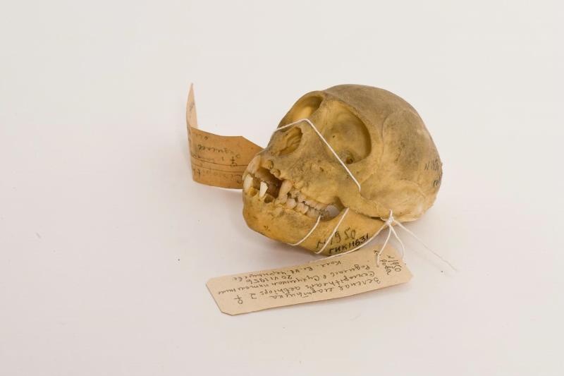 Костный материал. Череп мартышки зелёной. Cercopithecus aethiops. Классификация: Хордовые Chordata, Позвоночные Vertebrata, Млекопитающие Mammalia, Приматы Primates, Мартышковые Cercopithecidae, Cercopithecinae, Зеленая мартышка Chlorocebus aethiops L.,1758