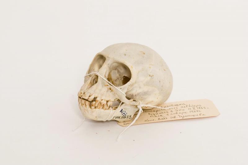 Костный материал. Череп мартышки зелёной. Cercopithecus aethiops. Классификация: Хордовые Chordata, Позвоночные Vertebrata, Млекопитающие Mammalia, Приматы Primates, Мартышковые Cercopithecidae, Cercopithecinae, Зеленая мартышка Chlorocebus aethiops L.,1758