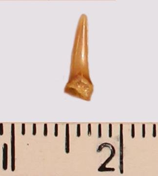 Зуб (фрагмент). Акула. Odontaspis subulata (Agassiz, 1843). Классификация: Хордовые Chordata, Позвоночные Vertebrata, Хрящевые рыбы Chondrichthyes, Пластиножаберные Elasmobranchii, Акулы Selachii, Ламнообразные Lamniformes