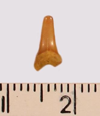 Зуб. Акула. Odontaspis subulata (Agassiz, 1843). Классификация: Хордовые Chordata, Позвоночные Vertebrata, Хрящевые рыбы Chondrichthyes, Пластиножаберные Elasmobranchii, Акулы Selachii, Ламнообразные Lamniformes