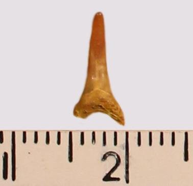 Зуб. Акула. Odontaspis subulata (Agassiz, 1843). Классификация: Хордовые Chordata, Позвоночные Vertebrata, Хрящевые рыбы Chondrichthyes, Пластиножаберные Elasmobranchii, Акулы Selachii, Ламнообразные Lamniformes