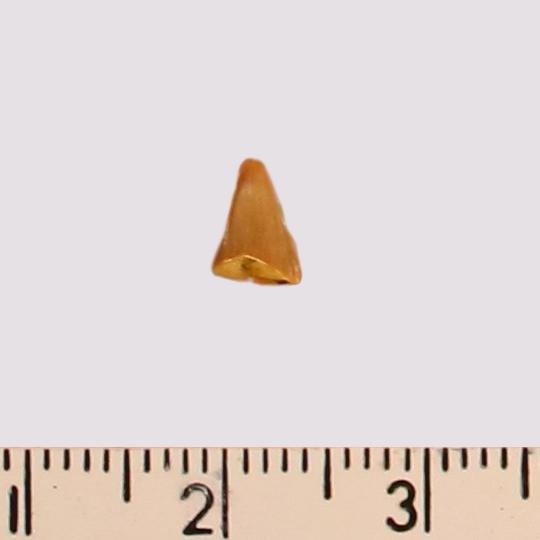 Зуб (фрагмент). Акула. Otodus sulcatus Geinitz, 1843. Классификация: Хордовые Chordata, Позвоночные Vertebrata, Хрящевые рыбы Chondrichthyes, Пластиножаберные Elasmobranchii, Акулы Selachii, Ламнообразные Lamniformes