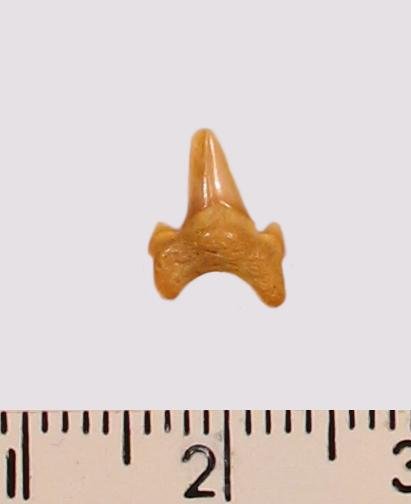 Зуб. Акула. Odontaspis macrorhiza (Cope) Leriche, 1902. Классификация: Хордовые Chordata, Позвоночные Vertebrata, Хрящевые рыбы Chondrichthyes, Пластиножаберные Elasmobranchii, Акулы Selachii, Ламнообразные Lamniformes