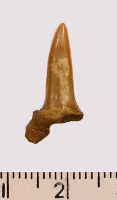 Зуб. Акула. Scapanorhynchus gigas Woodward 1889. Классификация: Хордовые Chordata, Позвоночные Vertebrata, Хрящевые рыбы Chondrichthyes, Пластиножаберные Elasmobranchii, Акулы Selachii, Ламнообразные Lamniformes