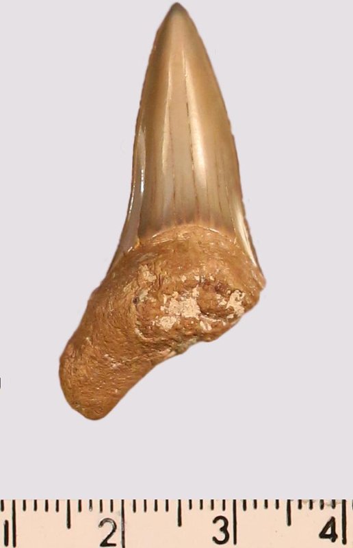Зуб. Акула. Cretoxyrhina denticulata (Gluckman, 1957). Классификация: Хордовые Chordata, Позвоночные Vertebrata, Хрящевые рыбы Chondrichthyes, Пластиножаберные Elasmobranchii, Акулы Selachii, Ламнообразные Lamniformes