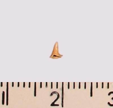 Зуб (фрагмент). Акула. Eostriatolamia subulata (Agassiz, 1843). Классификация: Хордовые Chordata, Позвоночные Vertebrata, Хрящевые рыбы Chondrichthyes, Пластиножаберные Elasmobranchii, Акулы Selachii, Ламнообразные Lamniformes