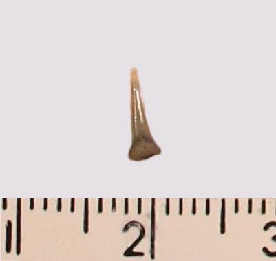 Зуб (фрагмент). Акула. Eostriatolamia subulata (Agassiz, 1843). Классификация: Хордовые Chordata, Позвоночные Vertebrata, Хрящевые рыбы Chondrichthyes, Пластиножаберные Elasmobranchii, Акулы Selachii, Ламнообразные Lamniformes
