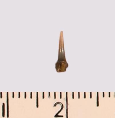 Зуб (фрагмент). Акула. Odontaspis subulata (Agassiz, 1843). Классификация: Хордовые Chordata, Позвоночные Vertebrata, Хрящевые рыбы Chondrichthyes, Пластиножаберные Elasmobranchii, Акулы Selachii, Ламнообразные Lamniformes