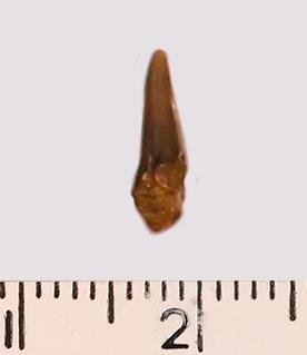 Коронка мелкого бокового зуба темно-бежевого цвета, рвуще-режущего типа, с гладким режущим краем. Корень не сохранился.