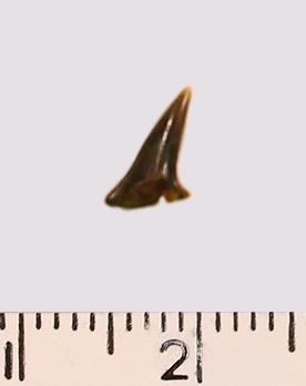Зуб (фрагмент). Акула. Eostriatolamia subulata (Agassiz, 1843). Классификация: Хордовые Chordata, Позвоночные Vertebrata, Хрящевые рыбы Chondrichthyes, Пластиножаберные Elasmobranchii, Акулы Selachii, Ламнообразные Lamniformes, Песчаные акулы Odontaspididae