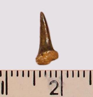 Зуб (фрагмент). Акула. Eostriatolamia subulata (Agassiz, 1843). Классификация: Хордовые Chordata, Позвоночные Vertebrata, Хрящевые рыбы Chondrichthyes, Пластиножаберные Elasmobranchii, Акулы Selachii, Ламнообразные Lamniformes, Песчаные акулы Odontaspididae