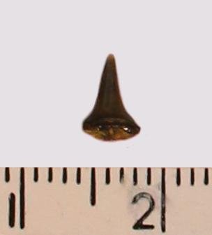 Зуб (фрагмент). Акула. Eostriatolamia subulata (Agassiz, 1843). Классификация: Хордовые Chordata, Позвоночные Vertebrata, Хрящевые рыбы Chondrichthyes, Пластиножаберные Elasmobranchii, Акулы Selachii, Ламнообразные Lamniformes, Песчаные акулы Odontaspididae