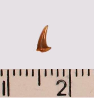 Зуб (фрагмент). Акула. Eostriatolamia subulata (Agassiz, 1843). Классификация: Хордовые Chordata, Позвоночные Vertebrata, Хрящевые рыбы Chondrichthyes, Пластиножаберные Elasmobranchii, Акулы Selachii, Ламнообразные Lamniformes