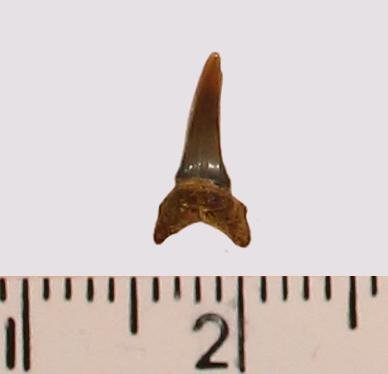 Зуб. Акула. Eostriatolamia subulata (Agassiz, 1843). Классификация: Хордовые Chordata, Позвоночные Vertebrata, Хрящевые рыбы Chondrichthyes, Пластиножаберные Elasmobranchii, Акулы Selachii, Ламнообразные Lamniformes