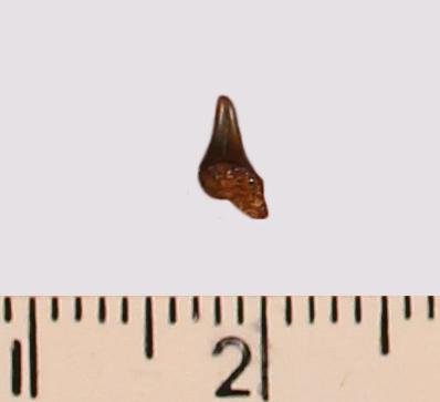Зуб (фрагмент). Акула. Odontaspis macrorhiza (Cope) Leriche, 1902. Классификация: Хордовые Chordata, Позвоночные Vertebrata, Хрящевые рыбы Chondrichthyes, Пластиножаберные Elasmobranchii, Акулы Selachii, Ламнообразные Lamniformes