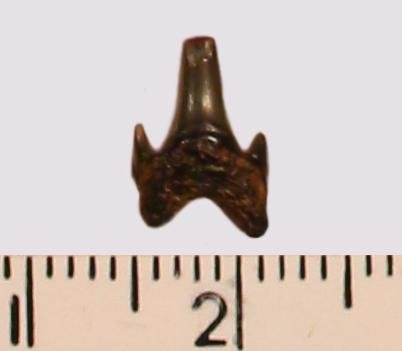 Зуб. Акула. Odontaspis macrorhiza (Cope) Leriche, 1902. Классификация: Хордовые Chordata, Позвоночные Vertebrata, Хрящевые рыбы Chondrichthyes, Пластиножаберные Elasmobranchii, Акулы Selachii, Ламнообразные Lamniformes
