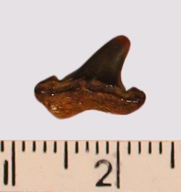 Зуб. Акула. Odontaspis macrorhiza (Cope) Leriche, 1902. Классификация: Хордовые Chordata, Позвоночные Vertebrata, Хрящевые рыбы Chondrichthyes, Пластиножаберные Elasmobranchii, Акулы Selachii, Ламнообразные Lamniformes