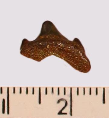 Зуб. Акула. Odontaspis macrorhiza (Cope) Leriche, 1902. Классификация: Хордовые Chordata, Позвоночные Vertebrata, Хрящевые рыбы Chondrichthyes, Пластиножаберные Elasmobranchii, Акулы Selachii, Ламнообразные Lamniformes