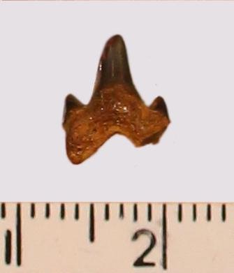 Зуб. Акула. Odontaspis macrorhiza (Cope) Leriche, 1902. Классификация: Хордовые Chordata, Позвоночные Vertebrata, Хрящевые рыбы Chondrichthyes, Пластиножаберные Elasmobranchii, Акулы Selachii, Ламнообразные Lamniformes