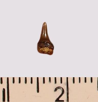 Зуб (фрагмент). Акула. Synechodus dubrisiensis (Mackie, 1863). Классификация: Хордовые Chordata, Позвоночные Vertebrata, Хрящевые рыбы Chondrichthyes, Пластиножаберные Elasmobranchii, Акулы Selachii, Синеходонтообразные Synechodontiformes
