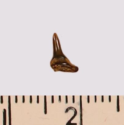 Зуб (фрагмент). Акула. Synechodus dubrisiensis (Mackie, 1863). Классификация: Хордовые Chordata, Позвоночные Vertebrata, Хрящевые рыбы Chondrichthyes, Пластиножаберные Elasmobranchii, Акулы Selachii, Синеходонтообразные Synechodontiformes