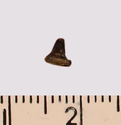 Зуб (фрагмент). Акула. Meristodon sp. Классификация: Хордовые Chordata, Позвоночные Vertebrata, Хрящевые рыбы Chondrichthyes, Пластиножаберные Elasmobranchii, Акулы Selachii, Гибодонтообразные Hybodontiformes