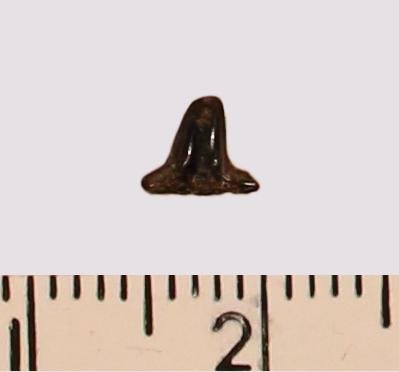 Зуб (фрагмент). Акула. Meristodon sp. Классификация: Хордовые Chordata, Позвоночные Vertebrata, Хрящевые рыбы Chondrichthyes, Пластиножаберные Elasmobranchii, Акулы Selachii, Гибодонтообразные Hybodontiformes