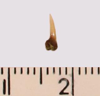 Зуб (фрагмент). Акула. Odontaspis subulata (Agassiz, 1843). Классификация: Хордовые Chordata, Позвоночные Vertebrata, Хрящевые рыбы Chondrichthyes, Пластиножаберные Elasmobranchii, Акулы Selachii, Ламнообразные Lamniformes