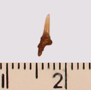 Зуб. Акула. Odontaspis subulata (Agassiz, 1843). Классификация: Хордовые Chordata, Позвоночные Vertebrata, Хрящевые рыбы Chondrichthyes, Пластиножаберные Elasmobranchii, Акулы Selachii, Ламнообразные Lamniformes