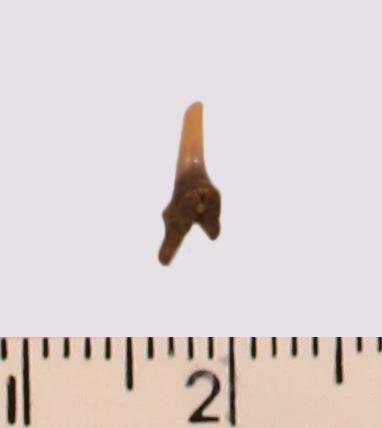 Зуб. Акула. Odontaspis subulata (Agassiz, 1843). Классификация: Хордовые Chordata, Позвоночные Vertebrata, Хрящевые рыбы Chondrichthyes, Пластиножаберные Elasmobranchii, Акулы Selachii, Ламнообразные Lamniformes
