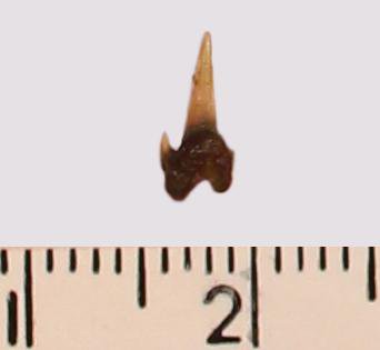 Зуб. Акула. Odontaspis subulata (Agassiz, 1843). Классификация: Хордовые Chordata, Позвоночные Vertebrata, Хрящевые рыбы Chondrichthyes, Пластиножаберные Elasmobranchii, Акулы Selachii, Ламнообразные Lamniformes