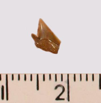Зуб (фрагмент). Акула. Palaeoanacorax obliquus (Reuss, 1845). Классификация: Хордовые Chordata, Позвоночные Vertebrata, Хрящевые рыбы Chondrichthyes, Пластиножаберные Elasmobranchii, Акулы Selachii, Ламнообразные Lamniformes