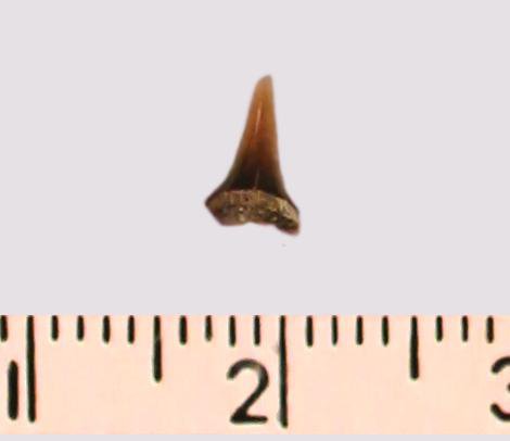 Зуб (фрагмент). Акула. Odontaspis subulata (Agassiz, 1843). Классификация: Хордовые Chordata, Позвоночные Vertebrata, Хрящевые рыбы Chondrichthyes, Пластиножаберные Elasmobranchii, Акулы Selachii, Ламнообразные Lamniformes