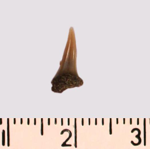 Зуб (фрагмент). Акула. Odontaspis subulata (Agassiz, 1843). Классификация: Хордовые Chordata, Позвоночные Vertebrata, Хрящевые рыбы Chondrichthyes, Пластиножаберные Elasmobranchii, Акулы Selachii, Ламнообразные Lamniformes
