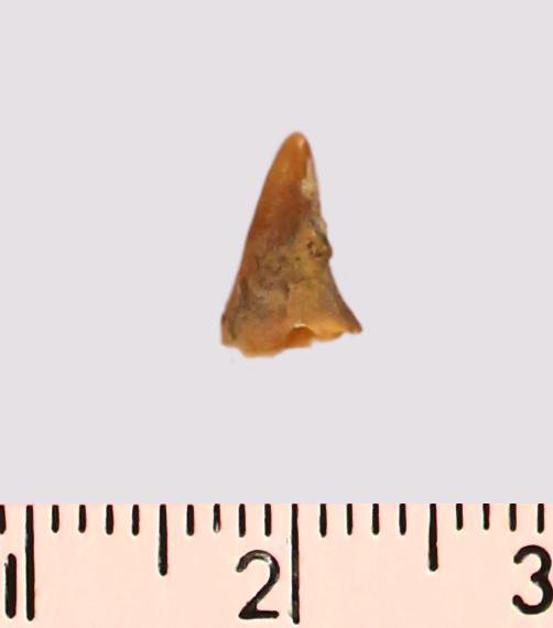 Зуб (фрагмент). Акула. Odontaspis macrorhiza (Cope) Leriche, 1902. Классификация: Хордовые Chordata, Позвоночные Vertebrata, Хрящевые рыбы Chondrichthyes, Пластиножаберные Elasmobranchii, Акулы Selachii, Ламнообразные Lamniformes