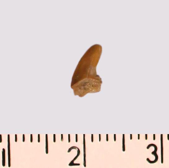 Зуб (фрагмент). Акула. Odontaspis macrorhiza (Cope) Leriche, 1902. Классификация: Хордовые Chordata, Позвоночные Vertebrata, Хрящевые рыбы Chondrichthyes, Пластиножаберные Elasmobranchii, Акулы Selachii, Ламнообразные Lamniformes
