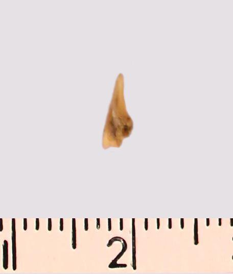 Зуб (фрагмент). Акула. Synechodus sp. Классификация: Хордовые Chordata, Позвоночные Vertebrata, Хрящевые рыбы Chondrichthyes, Пластиножаберные Elasmobranchii, Акулы Selachii, Синеходонтообразные Synechodontiformes