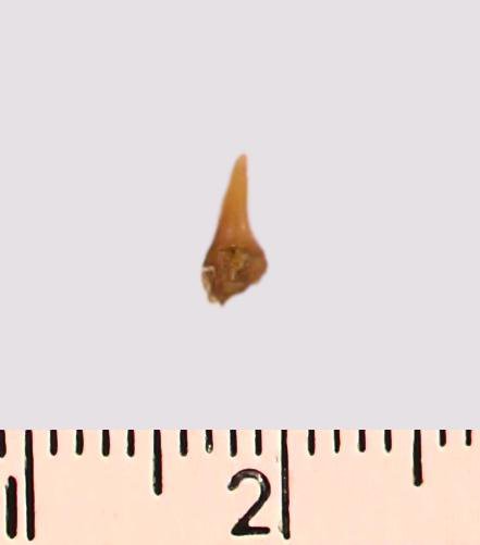 Зуб (фрагмент). Акула. Synechodus sp. Классификация: Хордовые Chordata, Позвоночные Vertebrata, Хрящевые рыбы Chondrichthyes, Пластиножаберные Elasmobranchii, Акулы Selachii, Синеходонтообразные Synechodontiformes