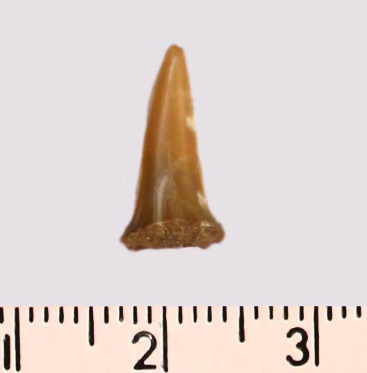 Зуб (фрагмент). Акула. Odontaspis macrorhiza (Cope) Leriche, 1902. Классификация: Хордовые Chordata, Позвоночные Vertebrata, Хрящевые рыбы Chondrichthyes, Пластиножаберные Elasmobranchii, Акулы Selachii, Ламнообразные Lamniformes